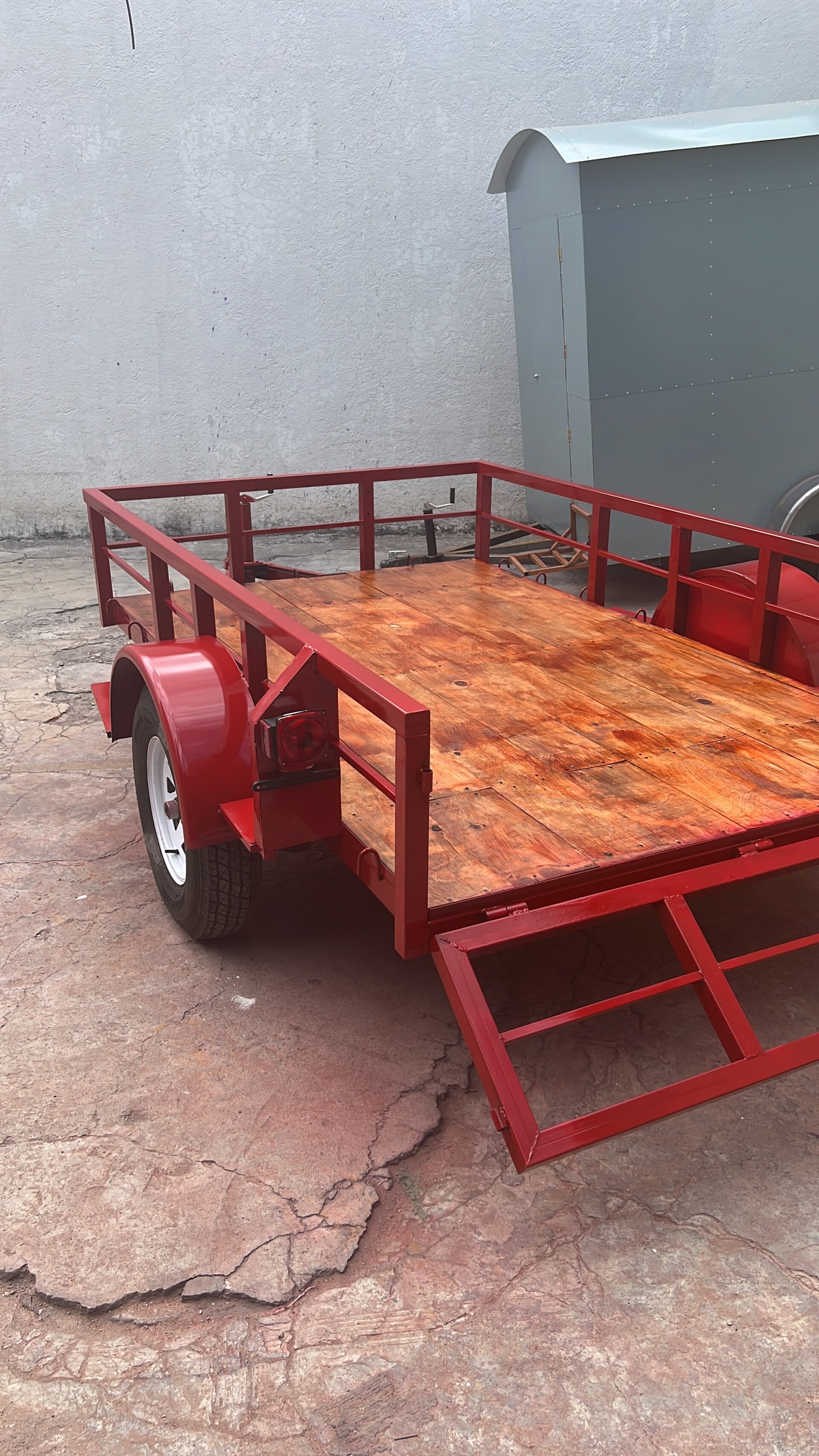 Plataforma de cama baja, de 2 toneladas de un solo eje suspencion a base de muelles con jalón cadenas de seguridad luces cama de madera de 1 1/2 medidas 3.5 x 2 . Especial para motos, cuatrimotos y o razer.